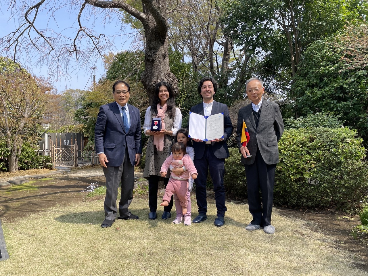 On this day, Dr. Cadena visited the MIF office with his family to report on completing his fellowship, sharing what he has learned and experienced during his time in Japan. The MIF is pleased that not only did he conduct his research at the University of Tokyo, but he also had opportunities to meet professors from other Japanese universities, which will foster new collaborations between Japan and Colombia. The MIF is eager to see how he will apply his experience to benefit his community in Colombia. The MIF thanks Prof. Okabe for her effort in hosting him and making his time in Japan more fruitful.